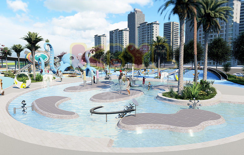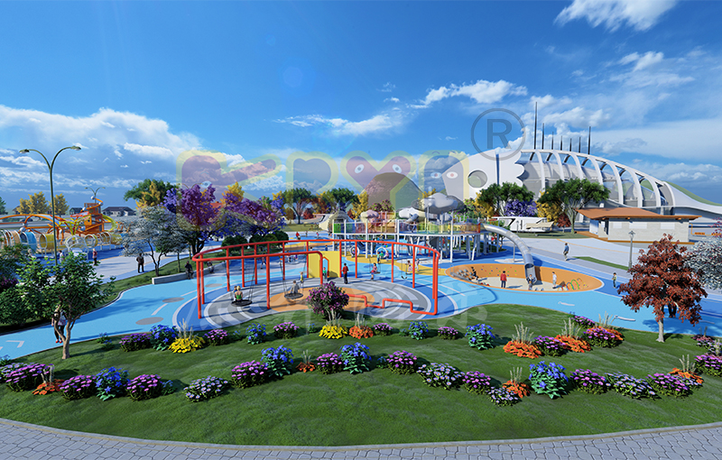 樂(lè)園附有一條蜿蜒的小溪,孩子、成年人和老年人可在這欣賞水景。這條小溪沿線有許多密集的長(zhǎng)凳和科普類型的游樂(lè)設(shè)施,如阿基米德取水器、壓水槍、互動(dòng)水渠等,朝向動(dòng)線步行空間,還種植樹(shù)木提供陰涼...